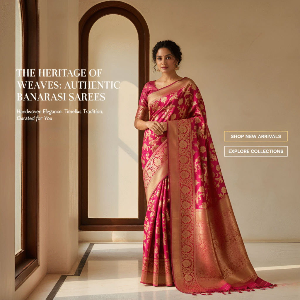 Our Mission: To preserve the magnificent artistry of Banarasi weaving while creating exquisite, high-quality ethnic wear that celebrates Indian heritage and empowers the modern wearer with grace and confidence.