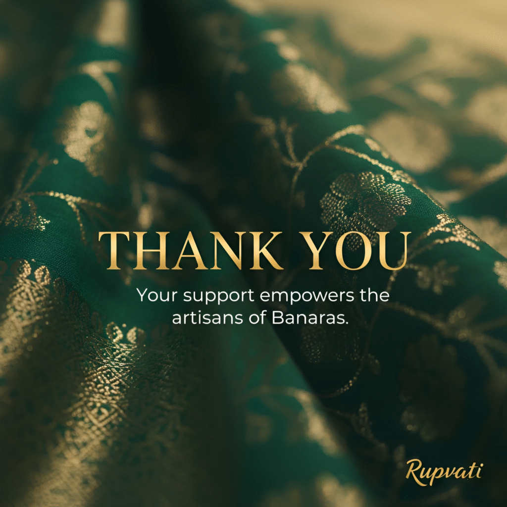 Thank you for choosing to be a part of the Rupvati story. By selecting one of our creations, you are not just acquiring a piece of clothing; you are endorsing the legacy of Indian handloom and supporting the livelihoods of the artisans who keep this magnificent craft alive.
